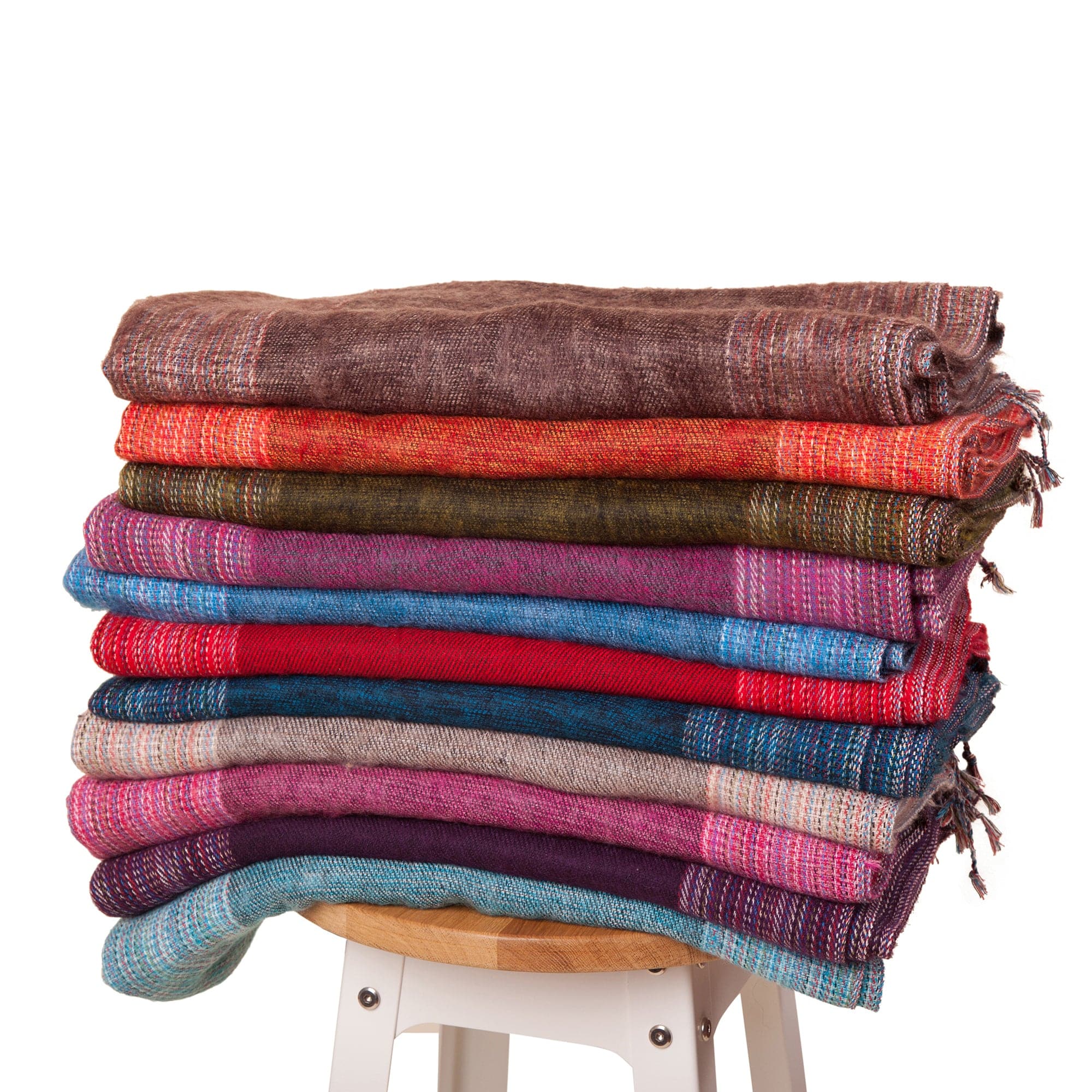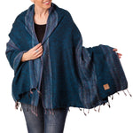 Woven on ancient wooden hand looms in Nepal, then over-brushed, which gives it a soft, textured finish. Slight variations may occur using this technique, which adds to the individual uniqueness of the scarf/shawl. It features twisted tassels at both ends.