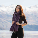 Woven on ancient wooden hand looms in Nepal, then over-brushed, which gives it a soft, textured finish. Slight variations may occur using this technique, which adds to the individual uniqueness of the scarf/shawl. It features twisted tassels at both ends.
