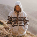 The patterns give a rustic, old-school look with a modern twist to the jacket. The timeless design is as at-home today worn after a days hiking as it would have been in a Californian campground in 1970.
